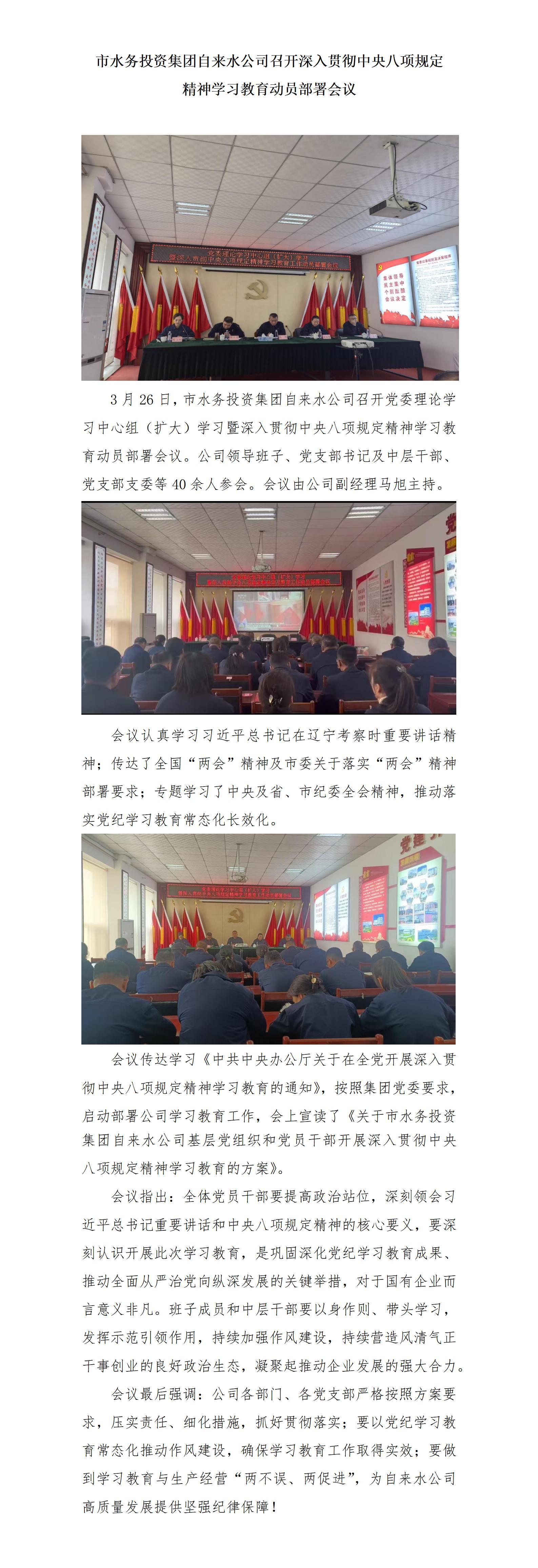 市水務(wù)投資集團自來水公司召開深入貫徹中央八項規(guī)定 精神學(xué)習(xí)教育動員部署會議