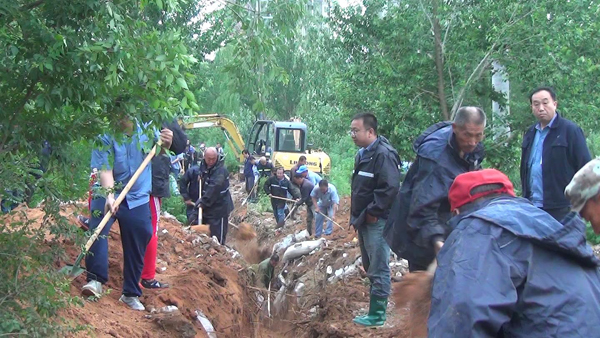 今年以來,高新園區(qū)至老合臺水廠段1萬伏高壓輸電線路多次出現(xiàn)故障,致使老合臺水廠停產(chǎn)。6月29日,因降雨導致該段輸電線路再次故障,造成老城區(qū)大面積停水。自來水公司積極與有關部門協(xié)商,決定重新鋪設一條電纜,以盡快恢復供電。自來水公司組織干部職工近百人,在經(jīng)理李文生帶領下冒雨搶挖電纜溝。