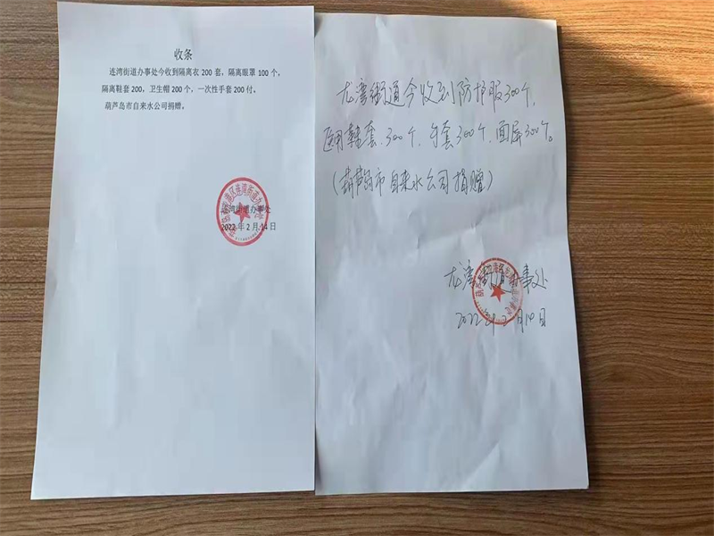 肩上有擔(dān)當(dāng)。郭明義愛心團(tuán)隊(duì)葫蘆島市自來水公司分隊(duì)和葫蘆島市城鎮(zhèn)供水協(xié)會(huì)主動(dòng)扛起社會(huì)責(zé)任,向綏中縣、龍港區(qū)、連山區(qū)、興城市、南票區(qū)、楊家杖子經(jīng)濟(jì)開發(fā)區(qū)和葫蘆島市防疫指揮部捐贈(zèng)虹螺山泉礦泉水總計(jì)一萬箱,助力疫情防控工作,奉獻(xiàn)愛心。葫水科技有限公司代表葫蘆島市自來水公司向龍港區(qū)龍灣街道辦事處、連灣街道辦事處捐贈(zèng)防護(hù)服500套、隔離面罩400個(gè)、醫(yī)用鞋套500副、一次性手套500副及衛(wèi)生帽200個(gè)。公司副經(jīng)理?xiàng)铥愌﹤€(gè)人出資一萬余元為茨山社區(qū)、新風(fēng)社區(qū)、首創(chuàng)龍灣、麗水陽光物業(yè)購(gòu)置方便面30箱、面包10箱、香腸10箱、礦泉水100件、醫(yī)用口罩5000余個(gè)、防護(hù)服30套、消毒液6桶。公司設(shè)計(jì)院向青青家園社區(qū)捐贈(zèng)N95口罩500只;綜合部員工闞丹向企業(yè)家協(xié)會(huì)捐贈(zèng)電熱水壺5個(gè)、暖水袋20個(gè)、加熱鞋墊20副;黨委工作部員工王莉莉向騰飛社區(qū)捐贈(zèng)方便面2箱、面包1箱、香腸1箱、鹽焗雞蛋1箱。一件件防疫物資承載著擔(dān)當(dāng)與愛心,彰顯著眾志成城、抗擊疫情的決心與信心,凝聚起共同戰(zhàn)“疫”的強(qiáng)大正能量。