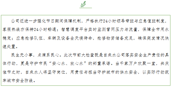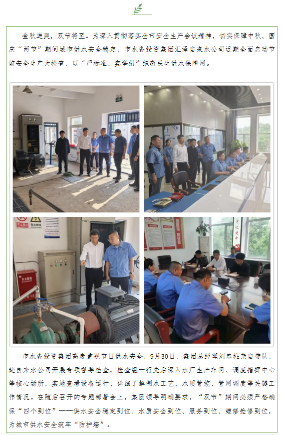 筑牢民生供水防線 守護雙節(jié)用水安全