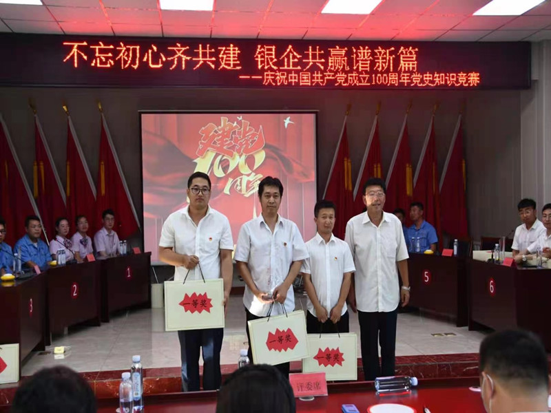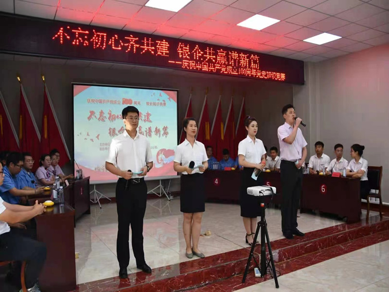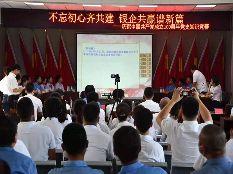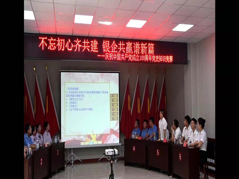 百年征程波瀾壯闊,百年初心歷久彌堅。為深入推進(jìn)黨史學(xué)習(xí)教育走心走深走實,以實際行動踐行初心使命,營造學(xué)黨史、知黨情、跟黨走的濃厚氛圍。7月26日,葫蘆島市自來水公司攜手中國農(nóng)業(yè)銀行、中國銀行、中機青山公司、平山公司、烏金塘水庫共同舉辦:“不忘初心齊共建 銀企共贏譜新篇”慶祝中國共產(chǎn)黨成立100周年黨史知識競賽活動,旨在通過學(xué)習(xí)競賽形式普及黨史知識,更好的促進(jìn)銀行與供水企業(yè)之間的交流與合作,為中國共產(chǎn)黨百年華誕獻(xiàn)禮。市國資委副主任、黨委委員單亞光,黨辦主任李海峰應(yīng)邀出席會議,各參賽單位主要領(lǐng)導(dǎo)參加會議。