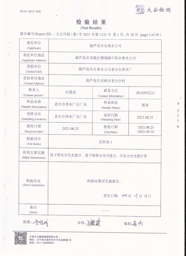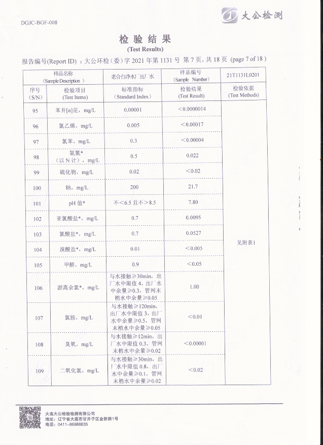 老合臺(tái)凈水廠出廠水質(zhì)檢驗(yàn)報(bào)告