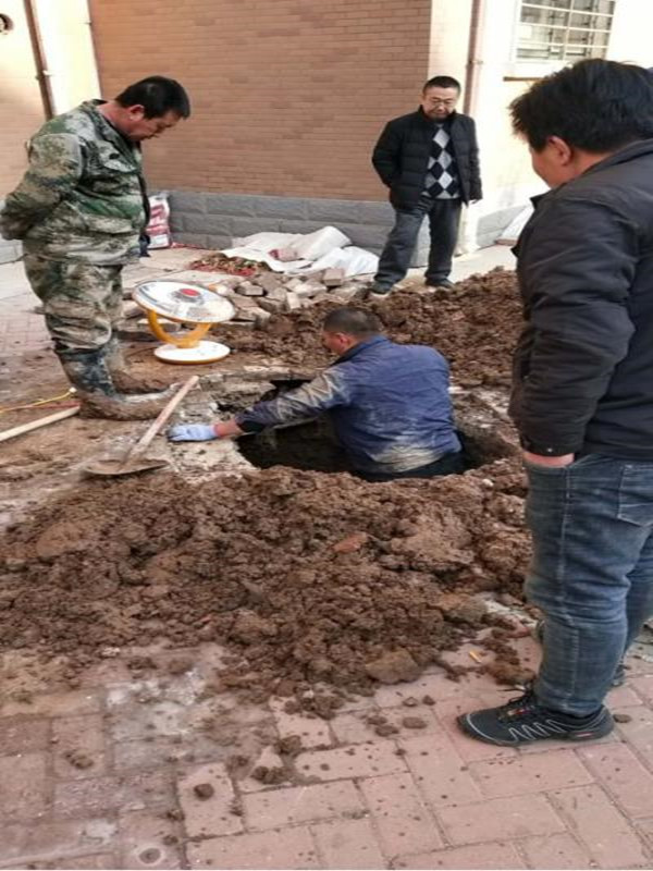 正月初二9:30,營業(yè)第二分公司接到用戶報修電話,反映教育園區(qū)B區(qū)73號樓前供水管線漏水。值班維修人員高峰、張良、張少輝第一時間趕赴現(xiàn)場,當即投入到緊張的搶修當中。尋找漏點需要破除冰層、挖掘凍土。為了搶時間,他們用鐵鎬、鐵鍬手工輔助除冰、破土。在室外溫度-15℃的工作環(huán)境下,經(jīng)過兩個小時的挖掘,終于找到漏點,順利完成維修。
