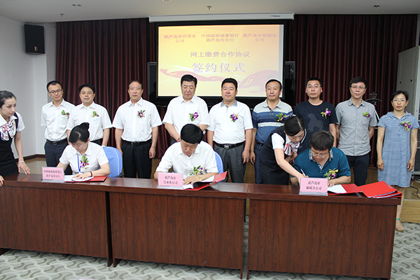 ——公司與郵儲(chǔ)銀行葫蘆島分行簽訂“網(wǎng)上代收水費(fèi)”合作協(xié)議